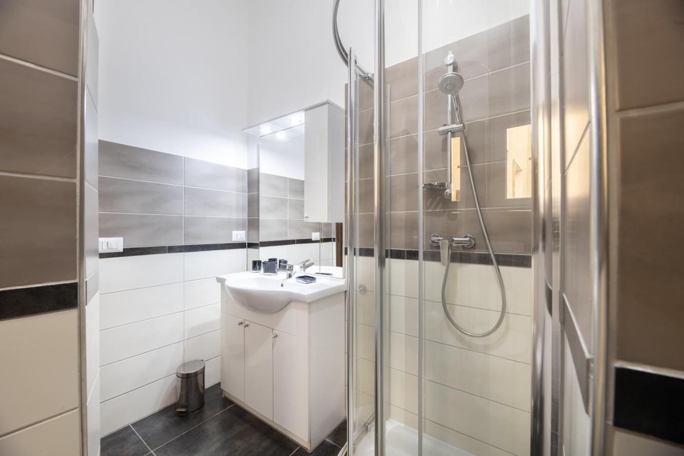 Monolocale. The studio offers air conditioning, a seating area, as well as a private bathroom featuring a shower and a bidet. The studios kitchen is available for cooking and storing food. This studio features a tiled floor, a flat-screen TV and a balcony. The unit offers 1 bed.