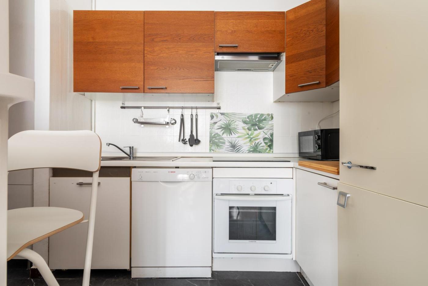 Questo appartamento con 2 camere da letto comprende un soggiorno con TV a schermo piatto, una cucina con utensili, frigorifero e lavastoviglie, e 1 bagno con bidet. Presso questo appartamento troverete asciugamani e lenzuola a disposizione.